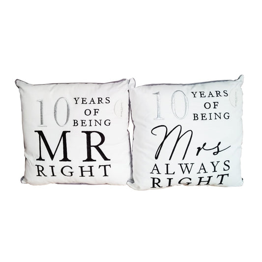 10th Anniversary Gift - Mr and Mrs Right Cushion Set