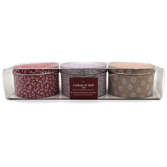 Latham & Hall Set of 3 Scented Tin Candles - Vintage Linen, Red Apple & Fig, Rose & Geranium