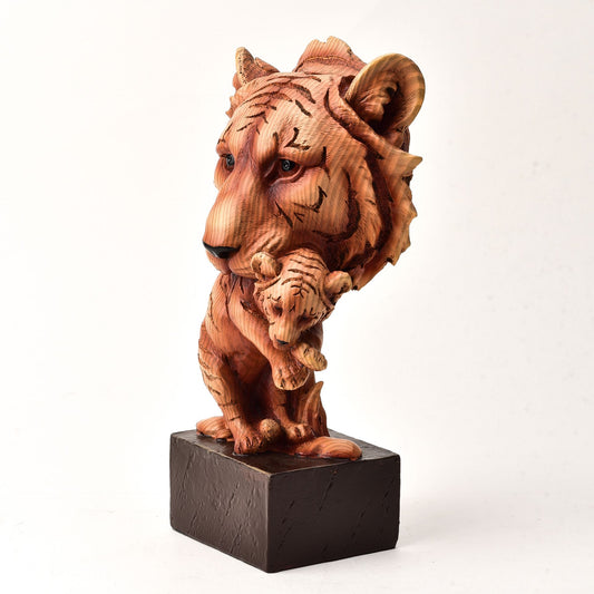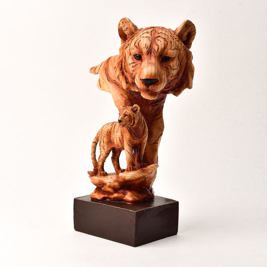 Naturecraft Tiger Head With Cub Wood Effect Resin Figurine