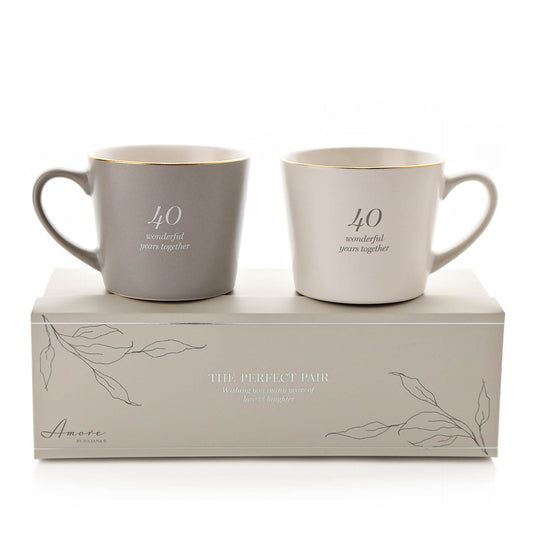 Amore 40th Anniversary Set of 2 Mugs - Grey & White