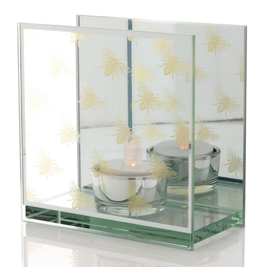 Hestia Glass Mirror Finish Double T-Light Holder with White Butterfly Flame Shape