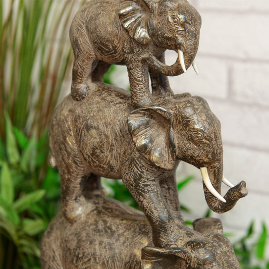Naturecraft 3 Elephant Tower Carved Effect Resin Figurine