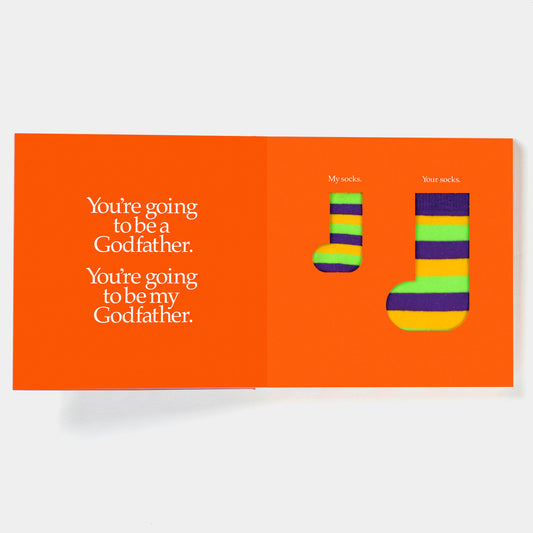 Pregnancy Reveal Your going to be a Godfather book with 2 Pairs of Socks