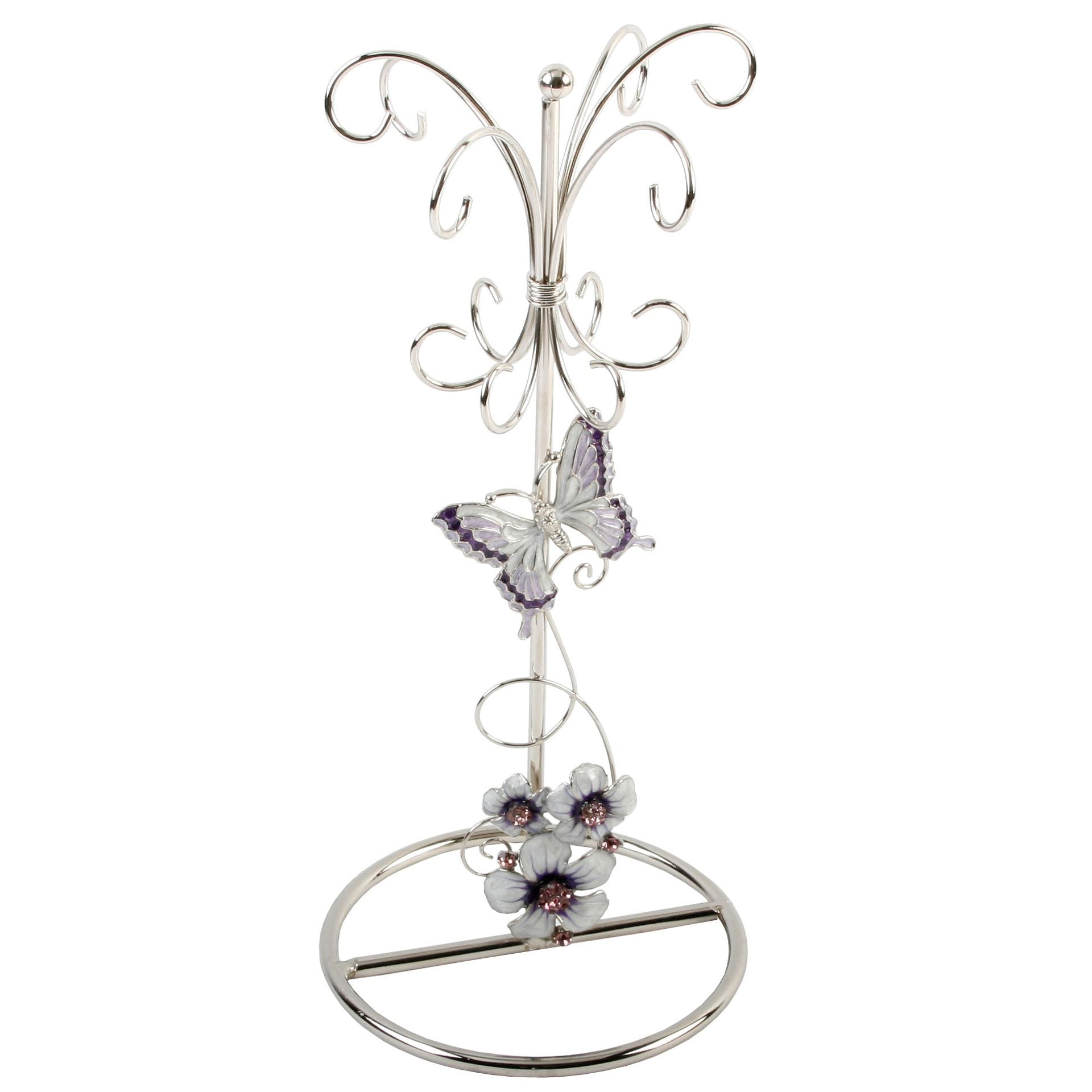 Sophia Purple Butterfly Flowers Crystal Wire Jewellery Holder