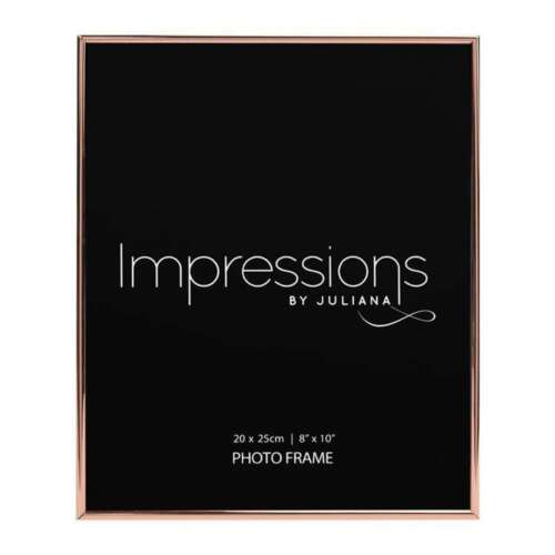 The Impressions by Juliana Copper Plated Thin Edged Photo Frame is a modern way to display your photos. Luxury black velveteen strut and a 5mm copper edge with 1cm depth highlights the photo inside, while a high-quality glass front offers protection. This frame holds a 10x8" photo and is perfect for standing or hanging.