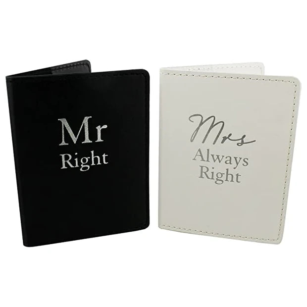 Passport Holders "Mr Right & Mrs Always Right" Black and White Passport Covers