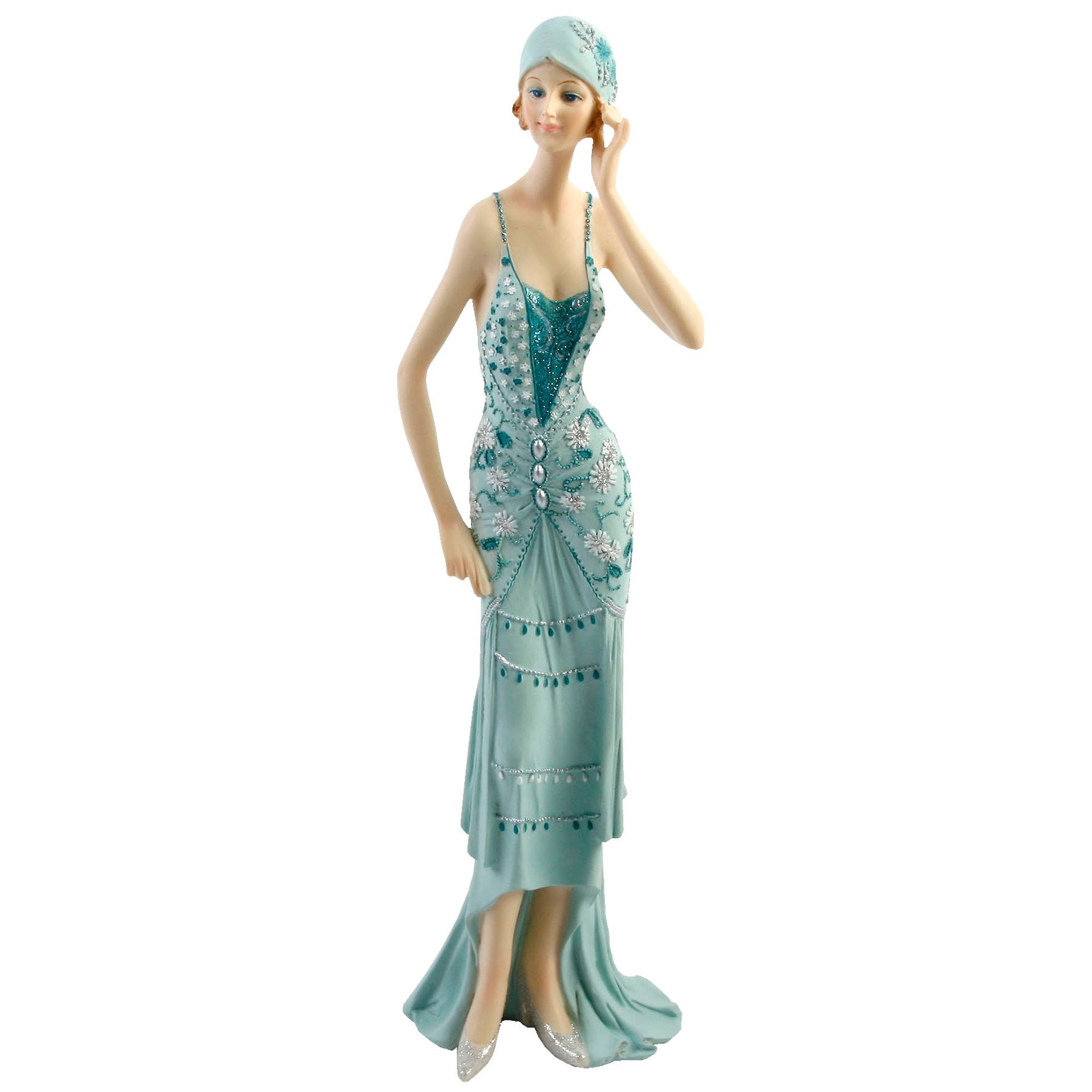 Broadway Belles Lady Figurine - Teal Dress, Hand To Head