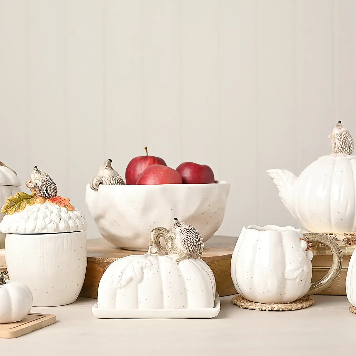 Add a touch of whimsy to your table with the Country Living Hedgehog Serving Bowl. This charming ceramic bowl features a delightful hedgehog figurine perched on the edge, bringing a playful and distinctive accent to your serveware. Perfect for serving salads, sides, or even as a decorative centrepiece, it combines practicality with personality.