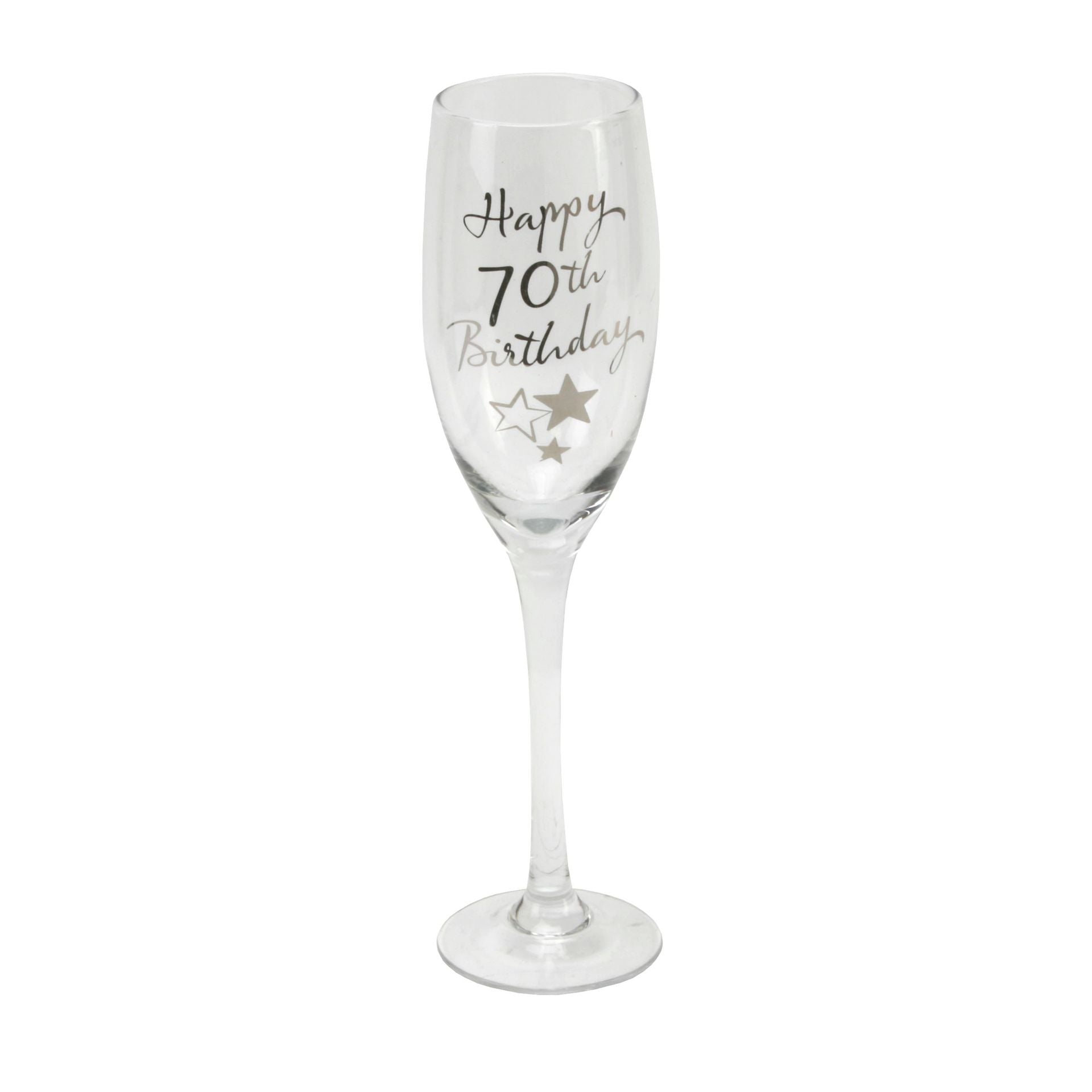 This classic Juliana champagne flute is expertly crafted to make a sophisticated 70th birthday gift, with a “Happy 70th Birthday” design and silver stars. Sure to make a lasting impression, this flute comes in a quality satin-lined gift box.