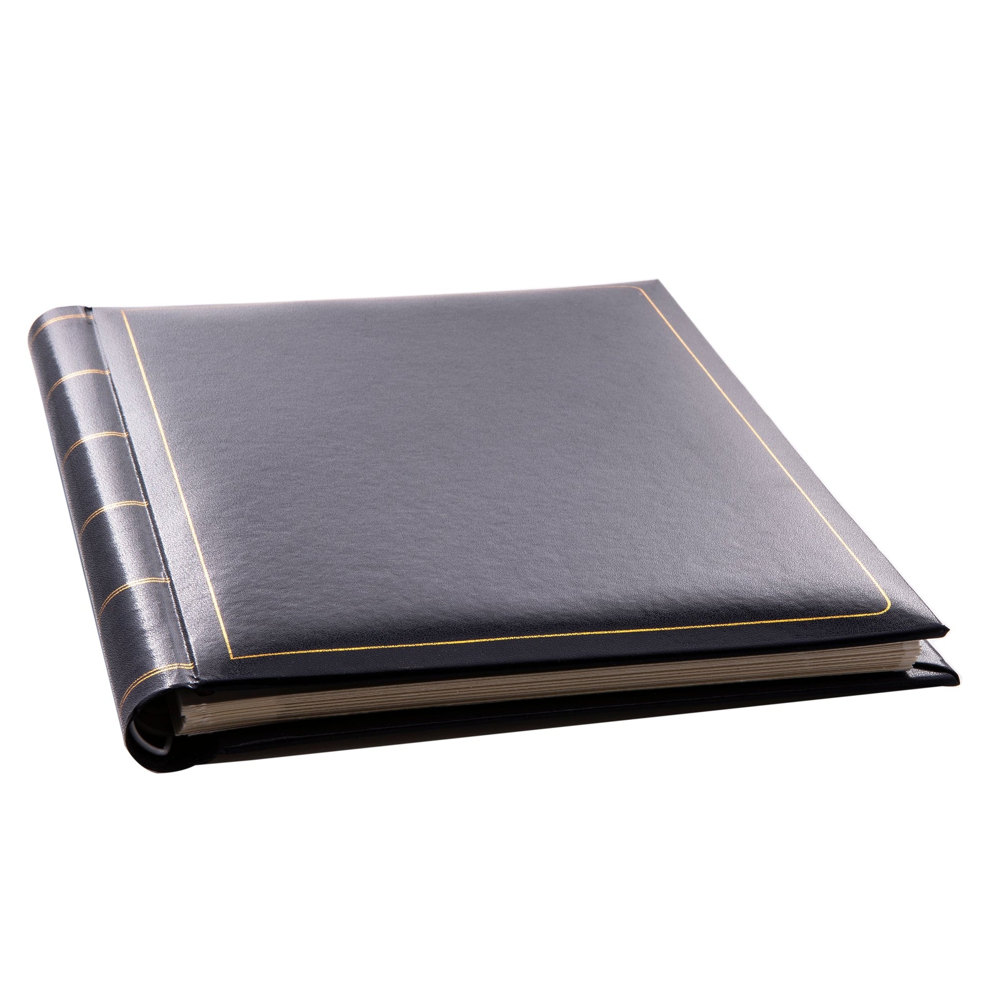 The Grafton Self Adhesive Album is stylishly designed with a vinyl cover and gold-effect trim on the front and spine. Its six horizontal pairs of lines on the spine makes it look great and distinguishable on any book shelf. There are a total of 20 pages and 40 sides, measuring approximately 10.5x6.75 inches, allowing for a wide usable page. Placing photos in the album is easy - just remove the plastic cover from the page, stick down your photos, and place the plastic cover back on top. The white pages are held in place by an internal plastic ring spine, ensuring smooth turning of the pages. The overall album size is 11.25" x 9" (HxW).