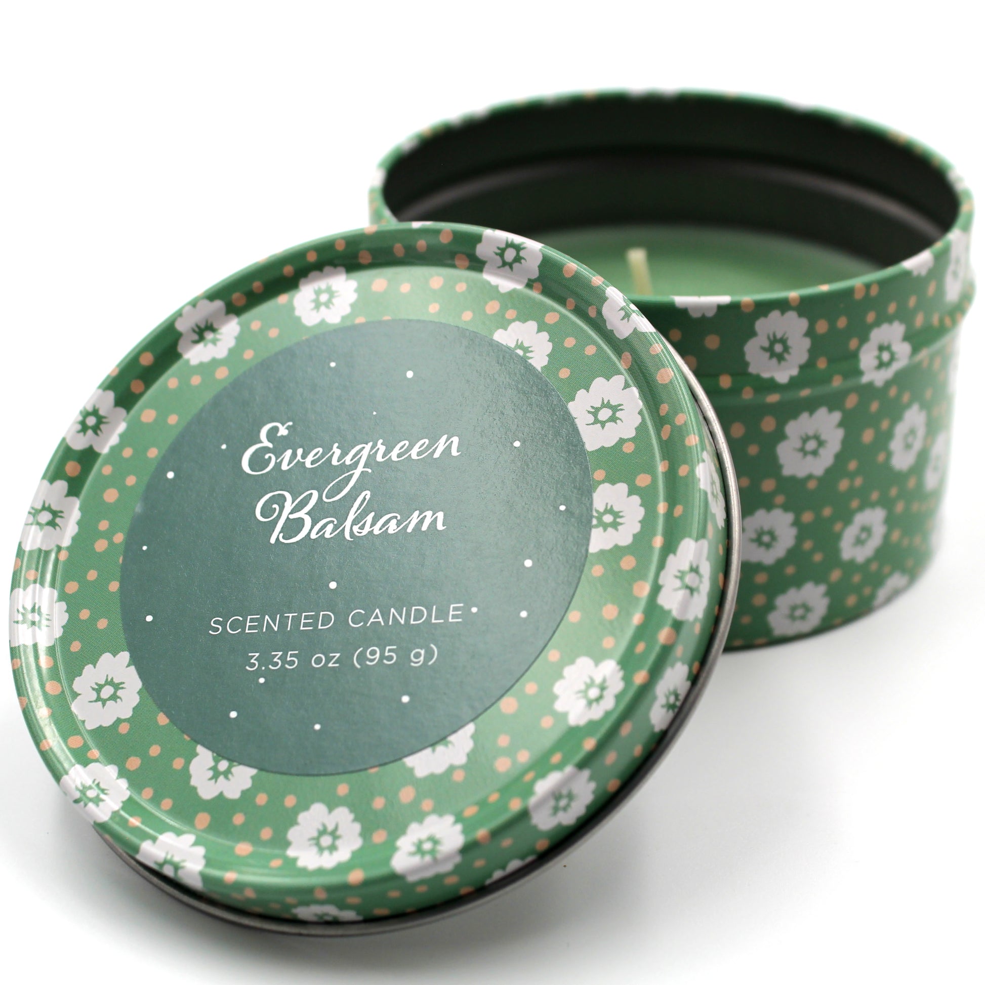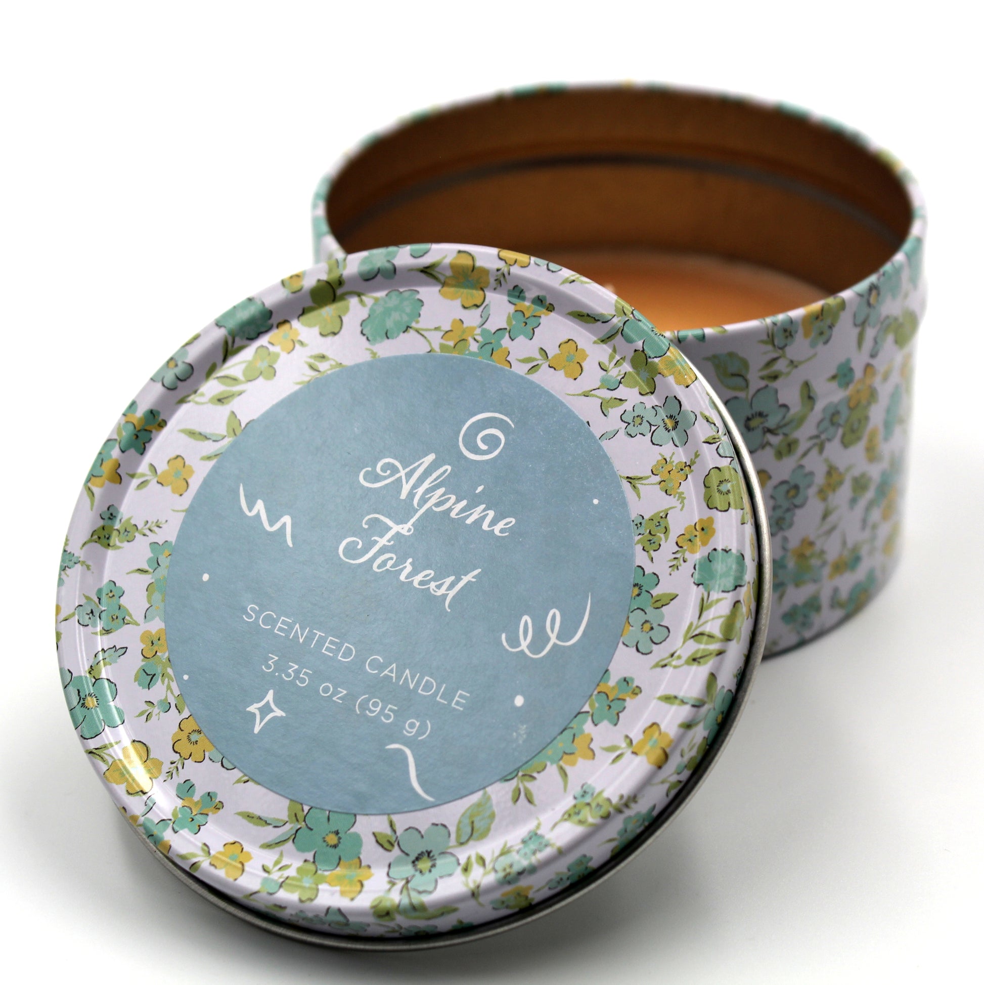 Latham & Hall Set of 3 Scented Tin Candles - Evergreen Balsam, Alpine Forest, Honeysuckle & Hydrangea