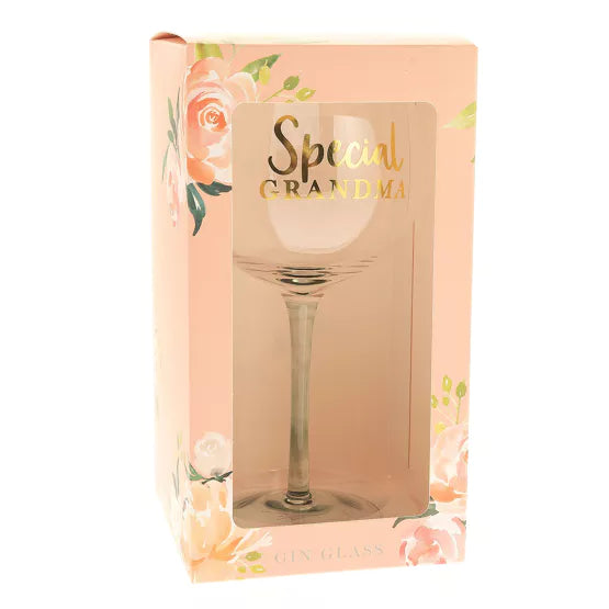 Treat your Grandma to a touch of elegance with the Peaches & Cream Grandma Gin Glass from Sophia. This beautifully crafted glass features a delicate gold rim and the heartfelt title "Special Grandma," making it a thoughtful gift she'll cherish. With its tall, stylish design (H:18.5cm x W:9cm), it’s perfect for her favourite gin or any refreshing drink. Whether it’s for Mother’s Day, her birthday, or simply to show your appreciation, this charming glass will bring a smile to her face every time she uses it.