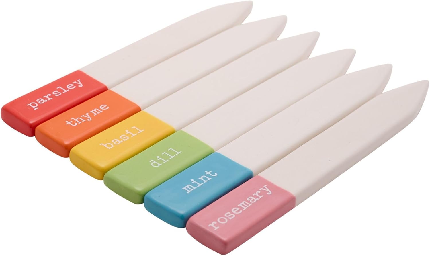 Enhance your garden with the Country Living Ceramic Herb Sticks, a charming and useful tool for every gardener. Each stick is thoughtfully designed with a white pointed tip for effortless placement in soil, helping you clearly label your herbs. The opposite end showcases a range of bright colours, making it simple to tell your herbs apart. Add a touch of beauty and organisation to your gardening routine with these attractive herb markers.