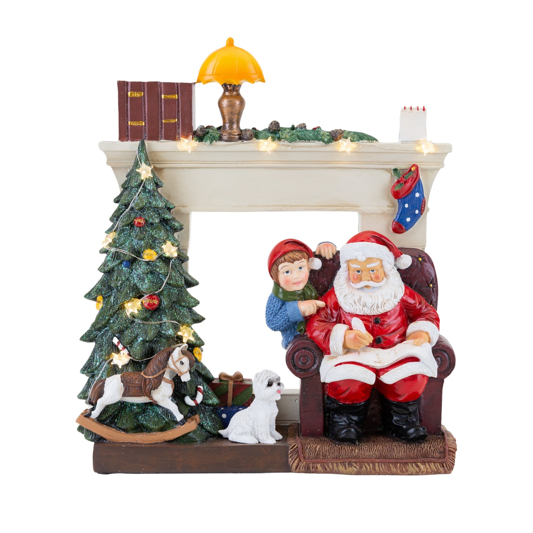 Santa Sat By The Fireplace Handpainted LED Figurine - 30 x 27 x 8 cm