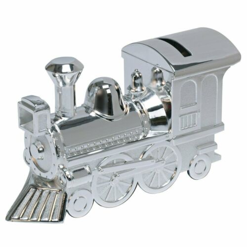 This Silver Money Box Christening - Train from BAMBINO BY JULIANA® is a perfect christening gift for both boys and girls. Crafted from metal alloy and finished with real silver plating, this train money box stands 85 h 140 w 50 d mm and weighs 0.38 kg. This beautiful gift is sure to add a touch of sparkle to any nursery.