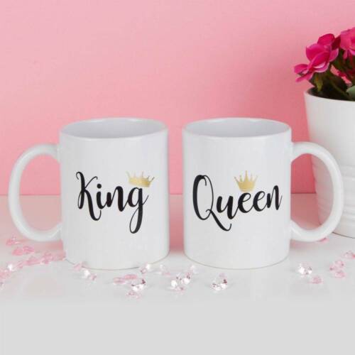 The CELEBRATIONS® True Valentine Set of 2 King & Queen Mugs make for the perfect romantic gift for your true valentine. Featuring an adorable 'King' and 'Queen' ceramic mug pair with gold foil crown details, 'be mine' hidden messages, and a delightful gift box, these mugs are chip resistant and made of stoneware, ideal for heavy use. Celebrate your love with this uniquely designed collection.