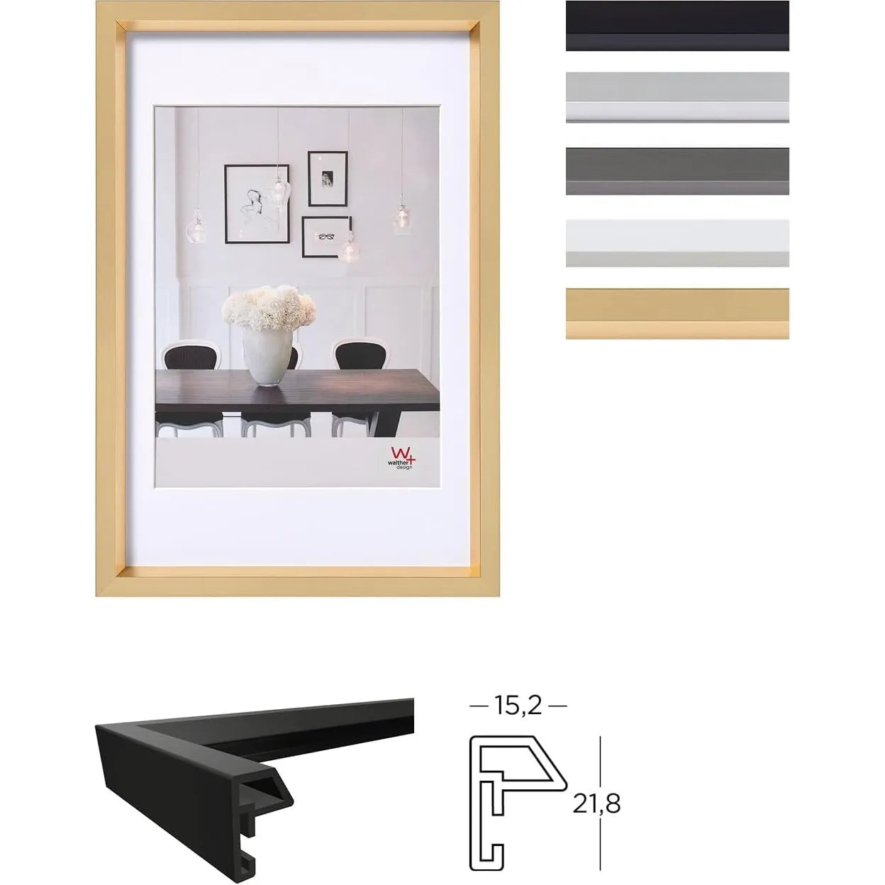 The Walther Steel Style Photo Frame Gold 9.5x7 Inch is a refined and versatile choice for showcasing your cherished photographs. Crafted with a minimalist design, this frame complements various interior styles, from contemporary to classic.