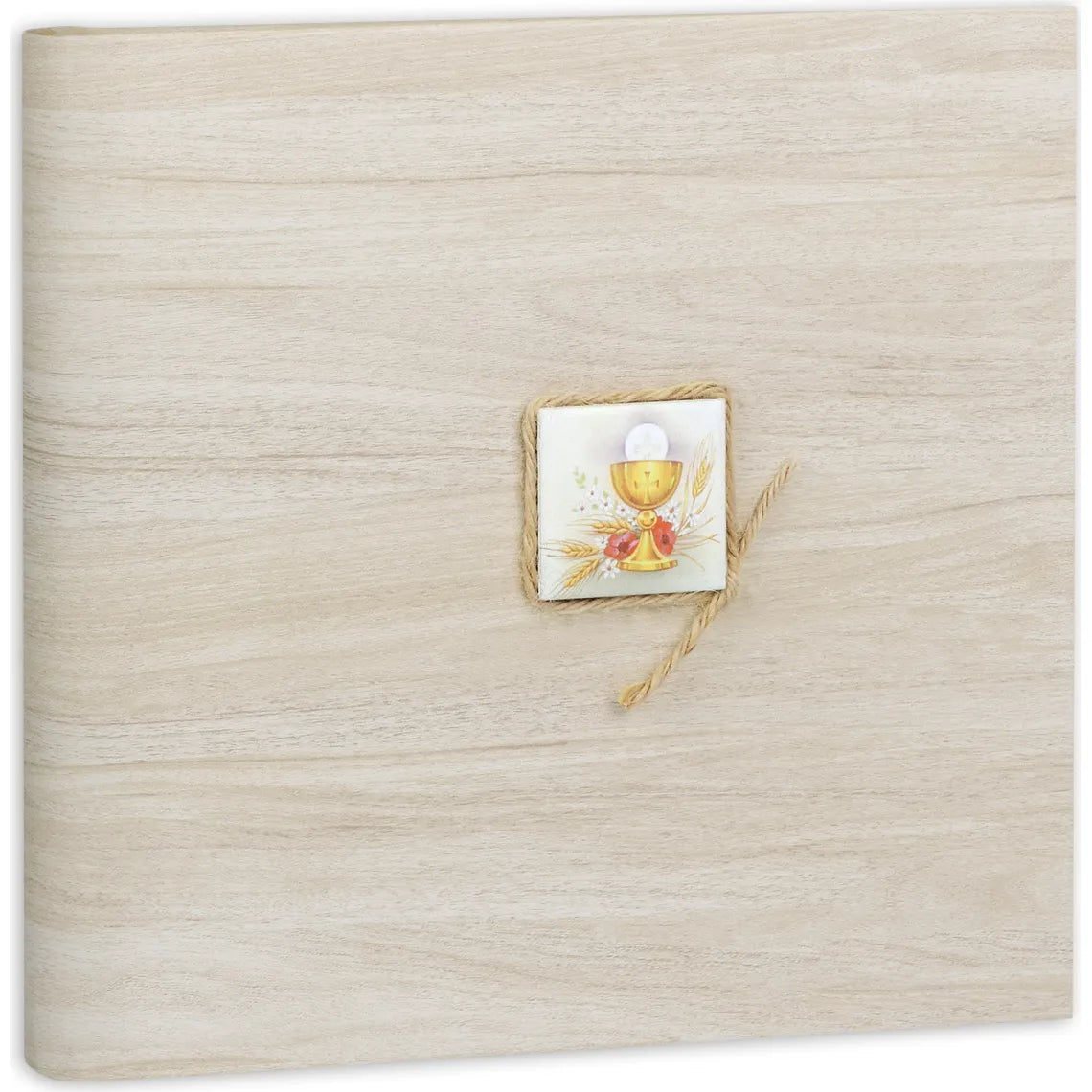 The ZEP Giovanni Holy Communion Photo Album is a beautifully handcrafted piece made in Italy, perfect for preserving your cherished memories. Designed in a traditional style, this bookbound album features a PU leather cover in a natural wood effect beige tone, accented with a brown decorative bow and Holy Communion symbol. Inside, it offers 20 cream-coloured pages with pergamin interleaves to protect your photos. Each page is ideal for sticking in your favourite 25x25 cm pictures, making it perfect for commemorating a special communion day.